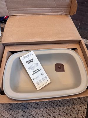 Brand new huge pampered chef rectangular bowl There is no lid but this bowl retailed for $110