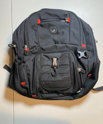 Disney Large Stitch Laptop Backpack and lunch box. Bottom shows wear.