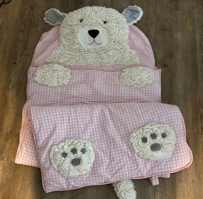 POTTERY BARN like NEW PINK SLEEPING BAG BEAR